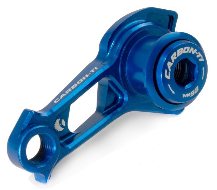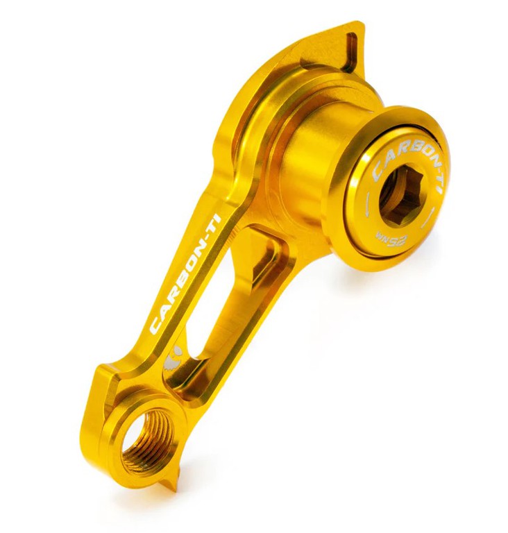 Destinée à permettre de supprimer le B-Link sur les dérailleurs Shimano et permettant un montage sur les cadres UDH, La patte de dérailleur Carbon-Ti X-Hanger est usinée CNC dans de l'aluminium 7075 T6.