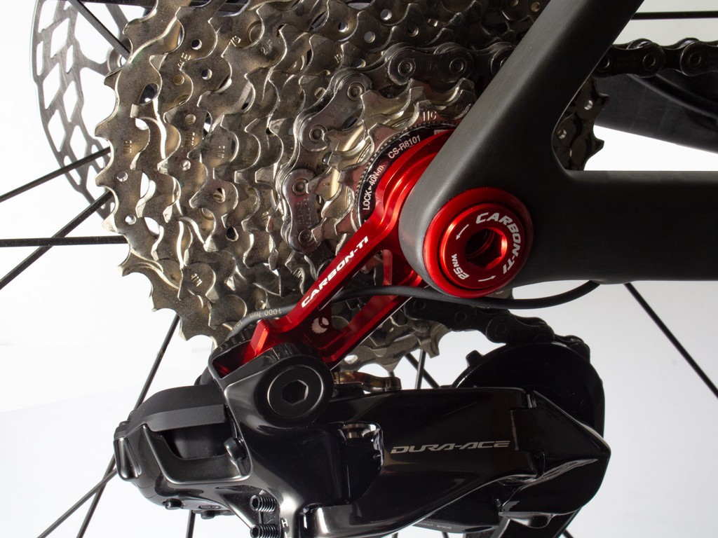 Développée et utilisée en compétition par l'UAE Team, La patte de dérailleur Carbon-Ti X-Hanger offre un design exclusif et des performances exceptionnelles.