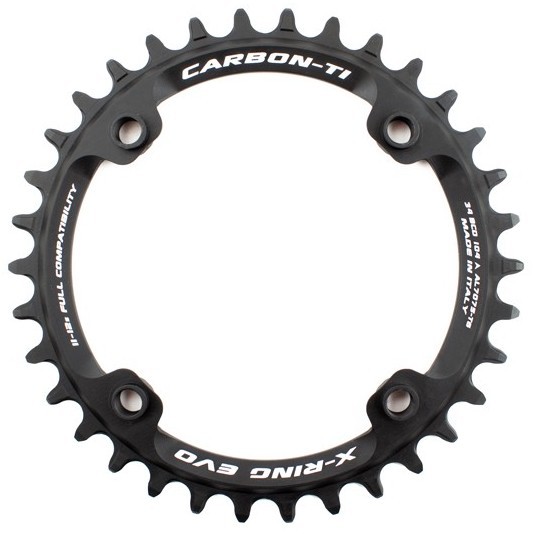 Compatible avec : Quarq SRAM XX1 Eagle, SRM Origin ou autres manivelles 104 and 104/64, SRAM Eagle 12s (XX1, X01, GX, NX & SX) et Shimano Hypeglide + 12s chains (XTR, XT, SLX, Deore). compatible avec 11vitesses ( guide chaîne nécessaire). Fixation par 4 vis mâles (M8x0.75) longueur minimale 7 mm. Nous recommandons le montage avec le kit vis Carbon-Ti X-Fix X-Ring EVO.