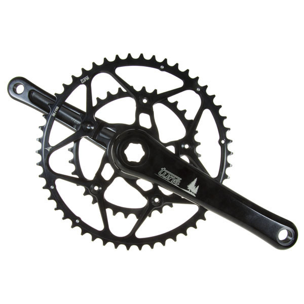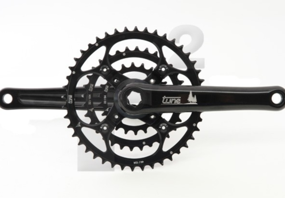livré avec plateaux Tune aluminium anodisé noir : 50/36 ou 34, merci de spécifier les dentures à la commande