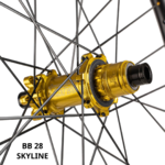 moyeu arrière : Climb Hill 28 trous, embouts d'axe aluminium 12 mm sur largeur 142 mm (standard) ou 148 mm (boost) ou QR (uniquement en version 135