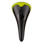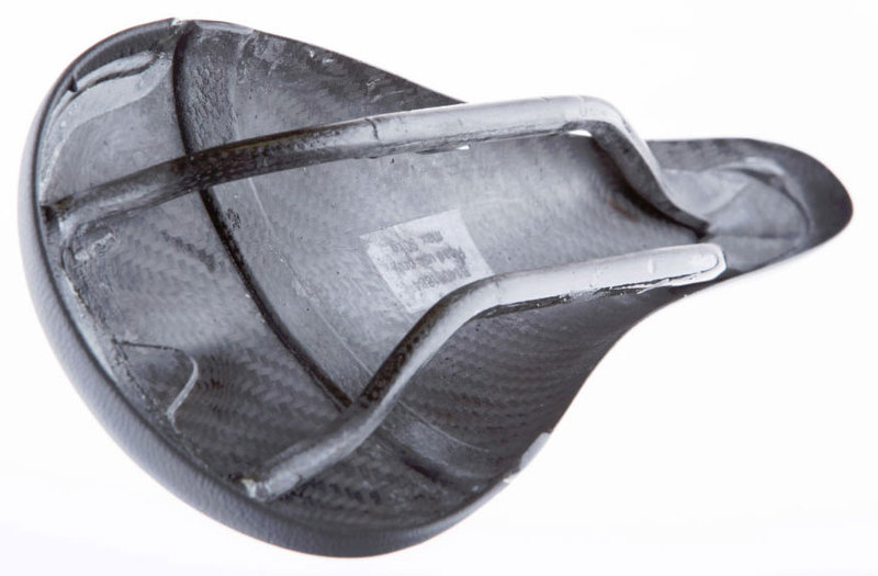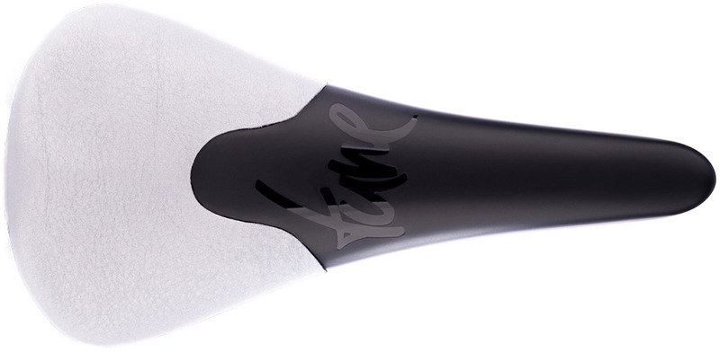 Selle route & VTT, entièrement en Carbone, arrière revêtu de cuir, rails Carbone à diamètres différenciés 8 et 9 mm pour plus de fiabilité au niveau du serrage et plus de souplesse aux extrémités !